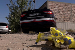 Полицейский на автостоянке Первопрестольного Эчмиадзина заснял номерной знак одной из машин