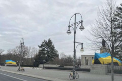 Գերմանիայում անհայտ անձինք ուկրաինական հսկայական դրոշներով ծածկել են խորհրդային ...