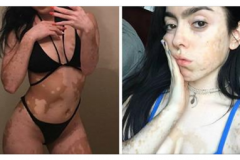 Девушка рисует на своем теле, художественно обыгрывая пятна витилиго