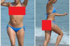 Когда силиконовая грудь не помещается в купальник (Фото)