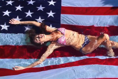 Մերկացած Ալեսանդրա Ամբրոսիոն՝ ԱՄՆ դրոշի ֆոնին
