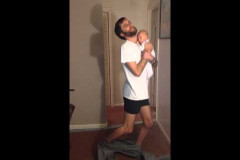 Հնարամիտ հայրը նորածնին գրկած տաբատ է հագնում (տեսանյութ)