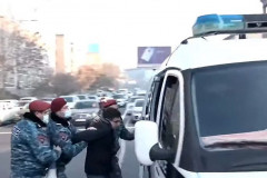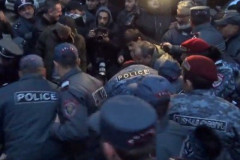Ոստիկանները բերման են ենթարկում փողոց փակած ցուցարարներին