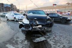 Երևանում բախվել են «Porsche Cayenne»-ը և «Opel»-ը․ վերջինը գլխիվայր հայտնվել է երթևեկելի գոտում, իսկ «Porsche Cayenne»-ը բախվել է կայանված «Toyota RAV4»-ին