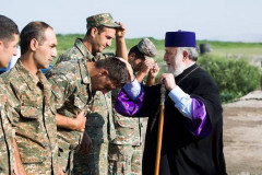 Գարեգին Բ կաթողիկոսը հայ-ադրբեջանական սահմանին ծառայող դիրքապահներին խաչեր ու Աս...