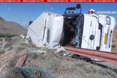 Տիգրանաշենի ոլորաններում 10 տոննա գառան մսով բեռնված մեքենան շրջվել է. կան վիրավ...