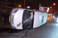 Երեւանում Audi-ի հետ բախումից կողաշրջվել է 11 համարի երթուղայինը. կա 9 վիրավոր
