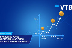ՎՏԲ-Հայաստան Բանկը բարձրացնում է ՀՀ դրամով ավանդների տոկոսադրույքները