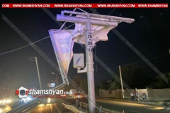 Արմավիրի մարզում գովազդային վահանակը կոտրվել ու կախվել է` փակելով արագաչափը