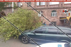 Կիեւյան փողոցում քամու հետեւանքով ծառը կոտրվել եւ ընկել է կայանված մեքենայի վրա