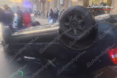 Երևանում բախվել են «Porsche Cayenne»-ը և «Opel»-ը․ վերջինը գլխիվայր հայտնվել է ե...