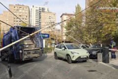 Երևանում աղբատար «KamAZ»-ը բախվել է գազատար խողովակներին ու էլեկտրասյանը, կոտրել...