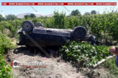 Արարատում «ՎԱԶ 21099»-ը դուրս է եկել ճանապարհից եւ գլխիվայր հայտնվել խաղողի այգո...