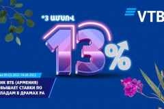 ВТБ (Армения) повышает ставки по вкладам в драмах РА