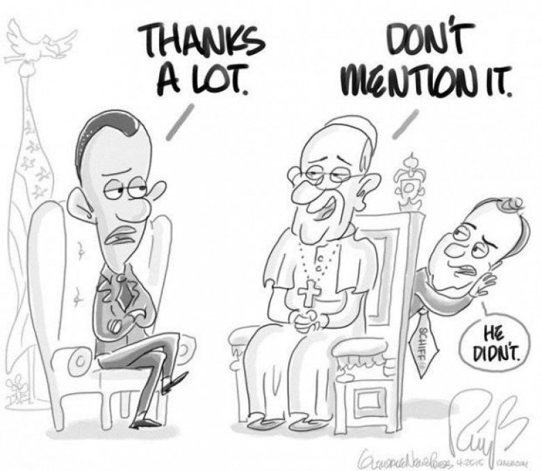 Այսպես, Բերտ Ռինգի ծաղրանկարում, որը հրապարակվել է «Glendale News-Press»-ում, պատկերված են Բարաք Օբաման ու Հռոմի Պապը: Օաբաման դժգոհ էէ, որ Պոնտիֆիկը, ինչպես նաեւ կոնգրեսական Ադամ Շիֆը ճանաչել է Հայոց ցեղասպանությունը: