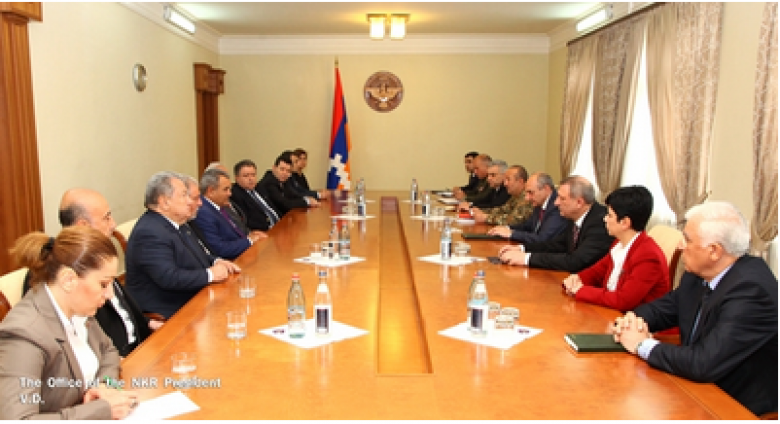 Ողջունելով հյուրերին՝ Նախագահ Բակո Սահակյանը հատկանշական է համարել այն, որ հանդիպումը կայանում է երկու պետությունների համար շատ կարևոր՝ մայիսյան եռատոնի նախօրեին: Արցախի Հանրապետության նախագահը նշեց, որ այս տարին Արցախի համար պատմական իրադարձություններով հարուստ տարի է, մասնավորապես՝ նոր են ավարտվել խորհրդարանական ընտրությունն երը: Պատմական կարևոր իրադարձություն է համահայկական 6-րդ ամառային խաղերի անցկացումը:
