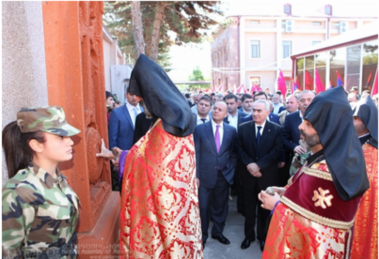 ՀասարակությունՀՀ ԱԺ նախագահ Գալուստ Սահակյանը ՀՀ պաշտպանության նախարար Սեյրան Օհանյանի եւ Երեւանի քաղաքապետ Տարոն Մարգարյանի ուղեկցությամբ Երկրապահի օրվան նվիրված միջոցառումների կապակցությամբ մայիսի 8-ին այցելել է ԵԿՄ վարչություն: Ինչպես տեղեկացրին ՀՀ ԱԺ հասարակայնության և տեղեկատվության միջոցների հետ կապերի վարչությունից, ԵԿՄ վարչությունում եկեղեց ու սպասավորներն իրականացրել են խաչքարերի օրհնության կարգ: