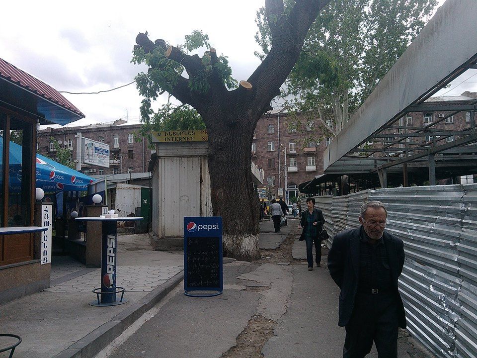 «Երևանի Սասուցի Դավիթ կայարանամերձ հրապարակի մի մայթը, որտեղ նախկինում գործում էր շուկա, այսօր ամբողջովին շրջափակված է: Կից նկարներում երևում է այդ շրջափակված տարածքն, ու այնտեղ ինչ-որ մարդիկ իրականացնում են շինարարական գործողություններ: Մտահոգված եմ նաև տարածքի ծառերով, որոնց անթույլատրելի միջոցներով կարող են չորացնել: