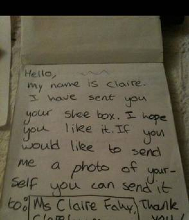 Աղջիկն 8 տարեկան էր, երբ գրել էր այդ նամակն ու դրել այն գունավոր մատիտներով, ձեռնոցներով, ատամի խոզանակներով և այլ իրերով լի տուփի մեջ, ապա այն ուղարկվել էր անբարենպաստ երկրներում ապրող երեխաներին, հաղորդում է իռլանդական Independent պարբերականը: