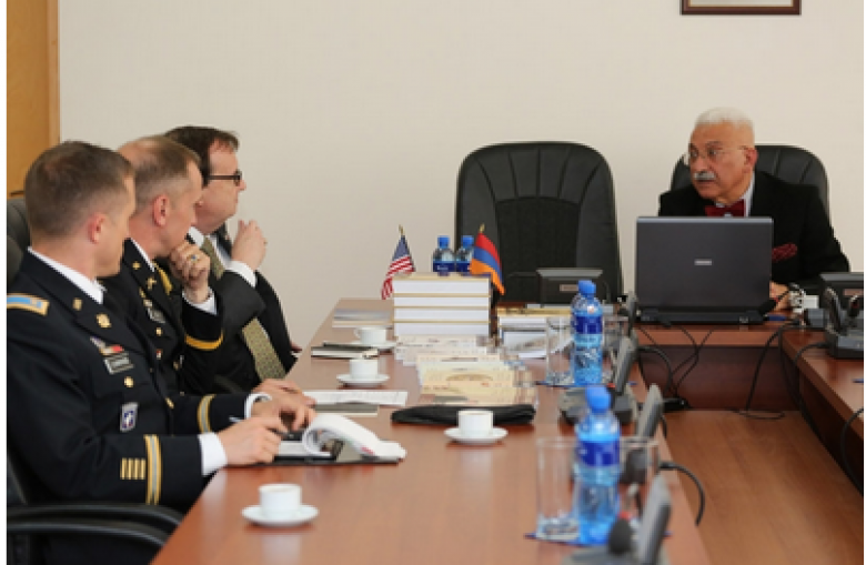 Քննարկումը ծավալվել է գիտական խորհրդի դահլիճում, որտեղ ԱՄՆ-ի Պաշտպանական ազգային համալսարանի շրջանավարտ և հրավիրյալ պրոֆեսոր Հայկ Քոթանջյանը հյուրերին հանգամանորեն ներկայացրել է Հայաստանի Պաշտպանական ազգային հետազոտական համալսարանի ստեղծման ուղղությամբ իրականացված նորարարական աշխատանքները՝ նշելով Ինստիտուտի գիտնական-վերլուծաբանների՝ ԱՄՆ-ի Պաշտպանական ազգային համալսարանում անցկացվող գիտական ստաժավորումների կարևորությունը: Դեսպան Միլսը, նույնպես լինելով ԱՄՆ-ի Պաշտպանական ազգային համալսարանի շրջանավարտ, կարևորել է ամերիկյ ան մոդելով Հայաստանում ազգային համալսարանի ստեղծման ծրագիրը՝ այն համարելով պաշտպանական-անվտանգային ոլորտում հայ-ամերիկյան համագործակցությանը որակական նոր մակարդակ հաղորդելուն ուղղված ինտելեկտուալ հարթակ: