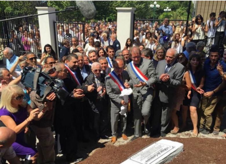 ՀասարակությունՀայոց ցեղասպանության 100-րդ տարելիցի միջոցառումների շրջանակներում հունիսի 4-ին տեղի է ունեցել Մարսելի 9-10 քաղաքապետարանի («Սպտիակ տուն»` «Maison Blanche») շենքի ճակատային մասում ամրացված «1915-2015. Հայոց ցեղասպանության 100-րդ տարելից» մակագրությամբ պաստառի հանդիսավոր բացման արարողությունը: Ինչպես տեղեկացրին ՀՀ արտգործնախարարության մամուլի, տեղեկատվության և հասարակայնության հետ կապի վարչությունից, միջոցառմաը ներկա են եղել Շվեյցարիայում ՀՀ դեսպան Շառլ Ազնավուրը, Մարսել-Պրովանս-Մետրոպոլ համայնքի նախագահ, պատգամավոր Գի Տեսիեն, Մարսելի 9-10 քաղաքապետարանի քաղաքապետ Լիոնել Ռուայե-Պերոն, Մարսելի 11-12 քաղաքապետարանի քաղաքապետ, պատգամավոր Վալերի Բուայեն, Մարսելում ՀՀ հյուպատոս Սամվել Լալայանը, փոխքաղաքապետեր, տեղական ինքնակառավարման մարմինների ներկայացուցիչներ, ֆրանսիական և հայկական կազմակերպությունների նախագահներ, լրագրողներ, հայ համայնքի բազմաթիվ ներկայացուցիչներ: