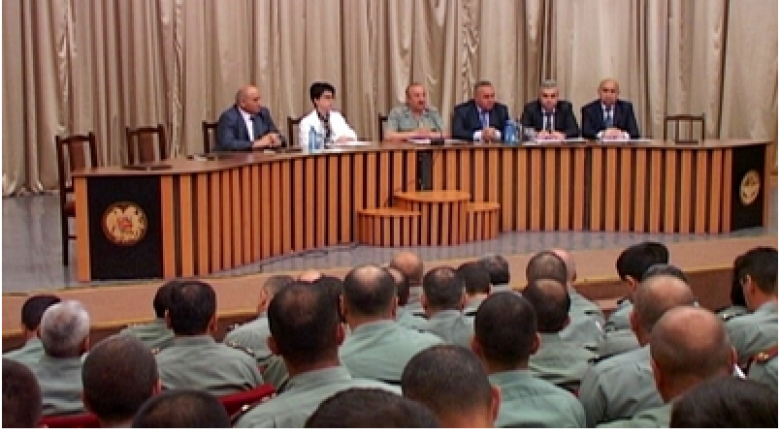 ՀասարակությունՍտեփանակերտի մշակույթի և երիտասարդության պալատում հունիսի 9-ին տեղի է ունեցել ծառայողական խորհրդակցություն՝ նվիրված 2014թ. ձմեռային զորակոչի արդյունքների ամփոփմանը և ընթացիկ տարվա ամառային զորակոչի խնդիրների քննարկմանը: Ինչպես տեղեկացրին ԼՂՀ պաշտպանության նախարարության մամուլի ծառայությունից, խորհրդակցությանը ներկա են եղել ՊԲ բարձրաստիճան սպայակազմը, ԼՂՀ կառավարության անդամներ, ուժային կառույցների և տեղական ինքնակառավարման մարմինների ղեկավարներ: