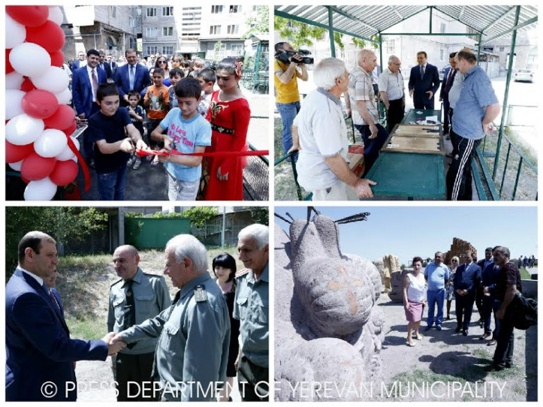 Այնուհետ քաղաքապետ Տարոն Մարգարյանը բնակիչների հետ միասին մասնակցել է Հ/Ա Բ-1 թաղամասի 63 և 65 շենքերի բակի հանդիսավոր բացման արարողությանը: Բակային այս տարածքը ևս դարձել է հանգստի յուրօրինակ գոտի՝ կահավորված նստարաններով, զրուցարաններով ու ժամանակակից խաղային ատրակցիոններով: Օգտվելով առիթից՝ բակերի բնակիչներն իրենց գոհունակությունն են հայտնել քաղաքապետին՝ տասնյակ տարիներ անխնամ մնացած բակերի համալիր բարեկարգման լայնամասշտաբ ծրագրերը նախաձեռնելու և կյանքի կոչելու համար: