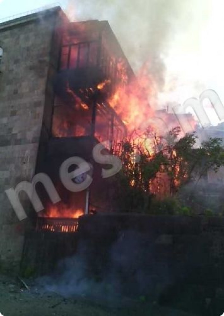 Խոշոր հրդեհ Մեղրիում. շենքն ամբողջությամբ կրակի մեջ է (ֆոտո)