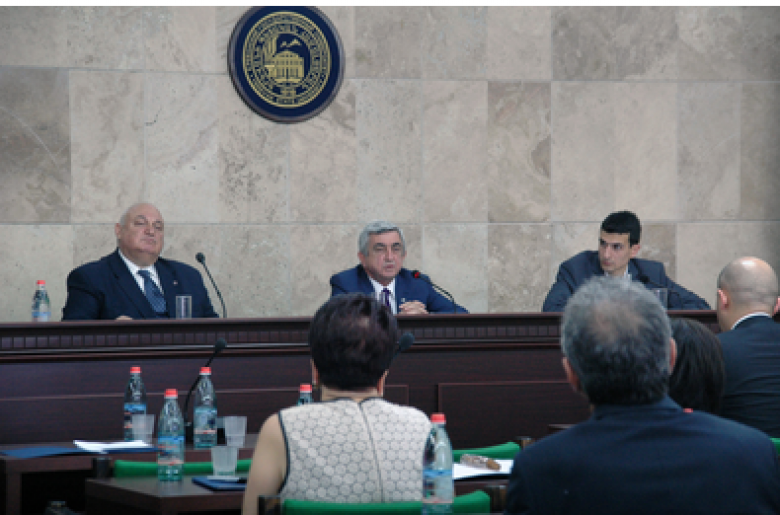 Նախագահը նշել է, որ Արամ Սիմոնյանի և նրա գործունեության վերաբերյալ խորհրդի անդամների ելույթներում հնչած գնահատանքի խոսքերը նորընտիր ռեկտորի համար պետք է լինեն պարտավորեցնող և անկախ նրանից, որ նրա ընտրության հարցում խորհրդի անդամները միակարծիք էին, դեռևս շատ անելիքներ կան Երևանի պետական համալսարանում: Նախագահի համոզմամբ, այդ անելիքները միշտ լինելու են, քանի որ չկա աշխարհի որևէ բուհ, որևէ հիմնարկություն կամ այլ հաստատություն, որտեղ ասեն, թե ամեն ինչ արել են և այլևս անելիք չունեն: Սերժ Սարգսյանն ընդգծել է, որ այդ անելիքները կարող են իրականություն դառնալ միայն մեծ եռանդի ներդրման և կառուցողական մթնոլորտի պայմաններում:
