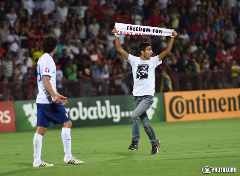Եվրո 2016-ի ընտրական մրցաշարում Հայաստան-Պորտուգալիա հանդիպման առաջին խաղակեսի ավարտին անազատության մեջ գտնվող «Ցեղակրոն» կուսակցության նախագահ Շանթ Հարությունյանի որդու՝ Շահեն Հարությունյանի խաղադաշտ ներխուժելը ծանր հետեւանք է ունենալու Հայաստանի ամբողջ ֆուտբոլային ընտանիքի համար: