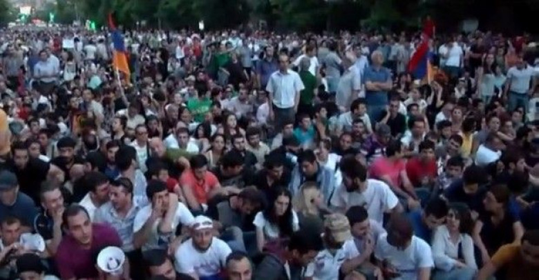 Նշենք, որ Բաղրամյան պողոտայում հազարավոր ցուցարարների դիմաց մի քանի շարքով պատ են կազմել ոստիկանները, Բաղրամյան և Դեմիրճյան փողոցների վրա նաև ոստիկանական մեքենաներ կան, այդ թվում՝ ջրցան եւ զրահամեքենաներ, փշալարեր։ Զրահաբաճկոններով, վահաններով ու ռետինե մահակներով զինված ոստիկանները մի քանի շարքով պատ են կազմել։ Ոստիկանների հետ կանգնած են նաեւ մեծ թվով քաղաքացիական հագուստով ոստիկաններ կան, որոնք կանգնել են ոստիկանական շղթայի առջե։ Չնայած նախազգուշացումներին` մի քանի հարյուր ցուցարար շարունակում է նստած մնալ գետնին, մի մասն էլ ուղղակի պառկել է Բաղրամյան պողոտայում, նրանք հայրենասիրական երգեր են երգում։