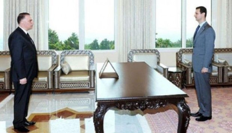 Լուսանկարում, որը հրապարակել է Սիրիայի SANA պետական գործակալությունը, պատկերված է 2011 թվականին Անաս Աբդուլ-Ռազակ Նաիմի երդմնակալության պահը Համա շրջանի նահանգապետի պաշտոնում: Անմիջապես երևում է նկարի ոչ բնական լինելը. չափազանց մեծ սեղան, ստվերների բացակայություն: