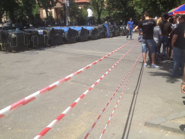 ՀասարակությունԱյս պահին Բաղրամյան պողոտայում տիրում է համեմատական հանգստություն: Րոպեներ առաջ ցուցարարներին բաժանվեց սնունդ եւ ջրեղեն: Արեւից պաշտպանվելու համար տեղադրվել են նաեւ մեծ հովանոցներ: Նկատենք, որ ստեղծվել է նաեւ հատուկ չեզոք տարածք լրագրողների համար, այն գտնվում է ոստիկանական պատի եւ աղբամանների միջեւ ընկած ոչ մեծ տարածքում: