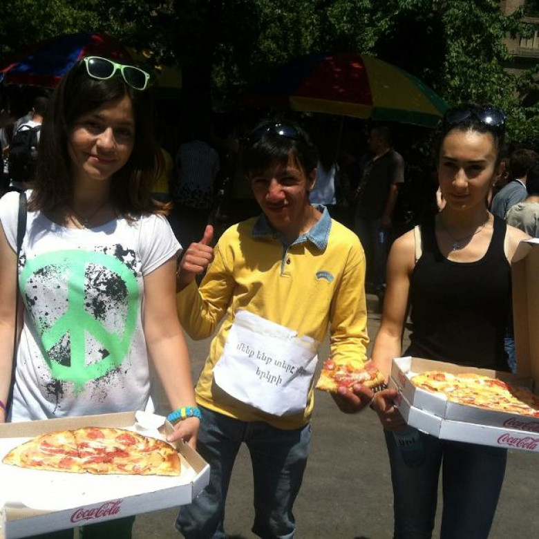Ամերիկահայ բարերարը պիցցաներ ու ֆրեշներ է ուղարկել Բաղրամյան փողոցի ցուցարարներին