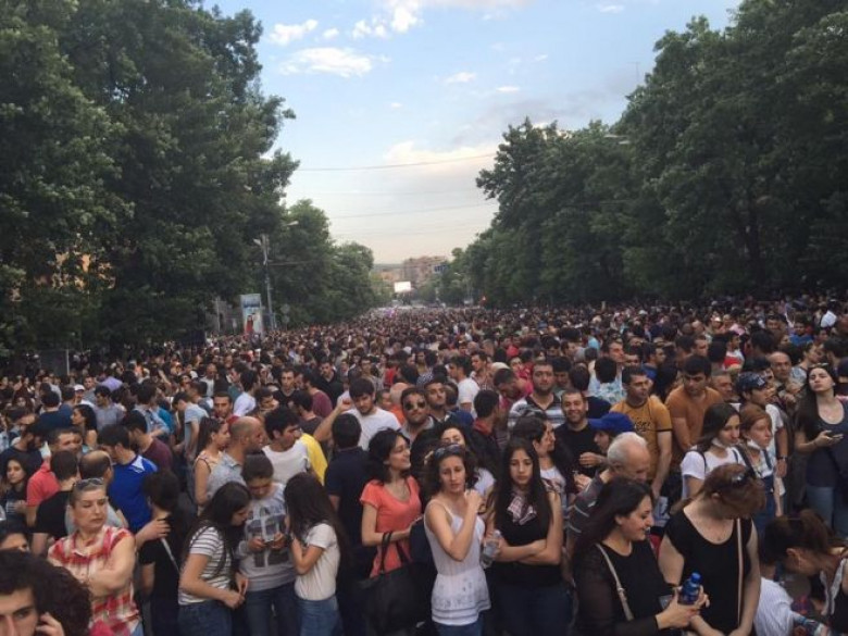 Օրվա իրադարձություններԱյս պահին Բաղրամյան պողոտայում ցույց իրականացնող ակտիվիստները բաժանվել են երկու մասի, մի մասը «Ոչ թալանին» նախաձեռնության անդամների հետ գտնվում են Ազատության հրապարակում, նրանք սպասում են, որպեսզի մյուսները եւս միանան իրենց, իսկ ժողովրդի զգալի զանգվածն էլ գտնվում է նստացույցի նույն վայրում` Բաղրամյան պողոտայի սկզբնամասում: