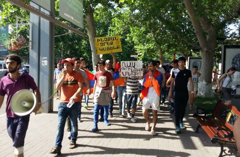 ՀասարակությունԵրեւանի Բաղրամյան պողոտայից քիչ առաջ մեկնարկել է մի խումբ երիտասարդների իրազեկման երթը: Իրազեկման երթի մասնակիցները Սայաթ-Նովա փողոցով, «միացում» վանկարկելով, ուղղություն են վերցրել դեպի Աբովյան փողոց: Նրանք քայլում են մայթերով: Երթի մասնակիցներին ուղեկցում են ոստիկաններ: