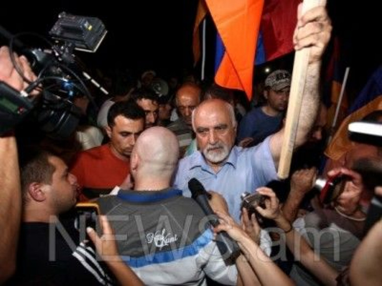 Տեղեկացնենք, որ ցուցարարները, տեսնելով Պ.Հ.-ի անհասկանալի հպարտ պահվածքը, սկսեցին սուլել եւ վանկարկել «հեռացիր» եւ «եռագույն» բառերը: Հանդիպելով հակաքաղաքական մեծ պատնեշի՝ նա կարծես թե փրփուրներից էր կախվում, փորձում լրագրողների եւ ցուցարարների աչքը մտցնել Հայաստանի դրոշը՝ ասելով. «Իսկ դուք դե՞մ եք Հայաստանի դրոշին»: