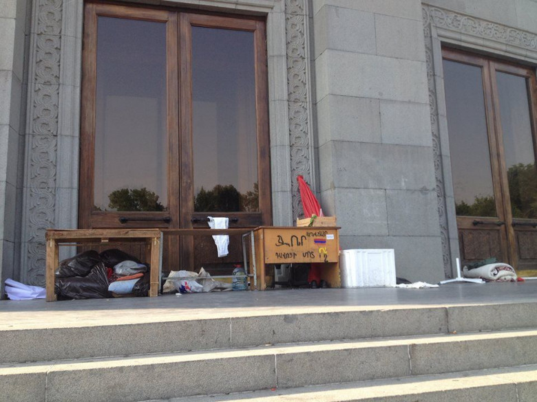 Հիշեցնենք, որ Ազատության հրապարակում բողոքի ակցիաները քաղաքապետարանի կողմից արտոնված չեն, սակայն ոստիկանները տարածքն ազատելու կոչով հանդես չեն եկել։ Ցուցարարների՝ Բաղրամյան պողոտայից բերված գույքն էլ տեղադրված է աստիճանահարթակին…