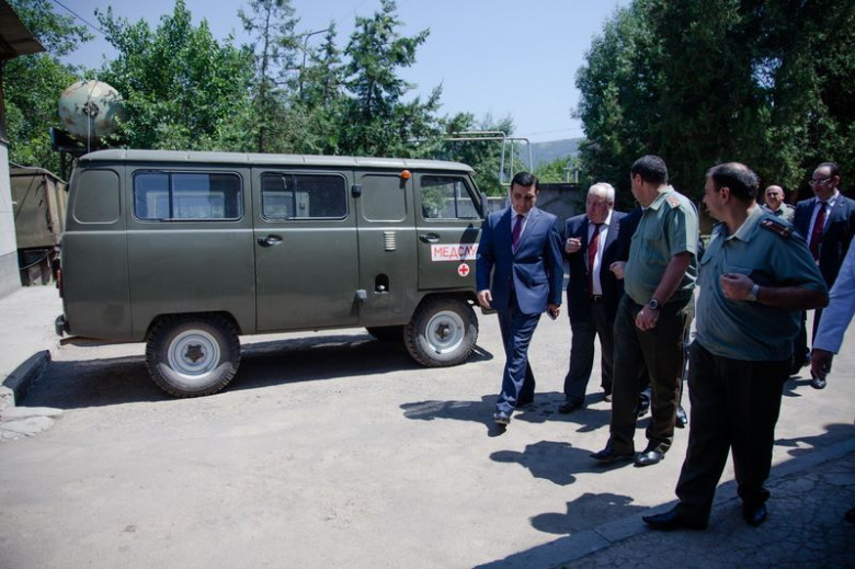 ՀՀ պաշտպանության նախարարության ռազմաբժշկական վարչության պետ, գնդապետ Կամավոր Խաչատրյանի ուղեկցությամբ նախարարը ծանոթացավ բժշկական օգնության եւ սպասարկման գործընթացին: Արմեն Մուրադյանին ներկայացվեցին վիրասրահի հնարավորությունները: