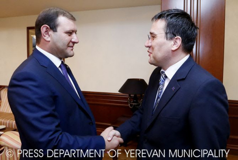 «Մենք մեծապես կարևորում ենք տարբեր ուղղություններով և ոլորտներում համագործակցության խորացումը Եվրոպական միության հետ, և պետք է նշեմ, պարոն դեսպան, որ Ձեր անմիջական աջակցությամբ մեր համատեղ ծրագրերն իսկապես արդյունավետ ու հաջողված են դարձել: Եվրամիության ֆինանսավորմամբ կյանքի կոչվող ծրագրերը հնարավորություն են ընձեռում ձեռք բերել նոր գործընկերներ, ինչպես նաև իրականացնել փորձի փոխանակումներ: Այսօր Երևանի քաղաքապետարանն իրականացնում է մի շարք կարևորագույն վարկային ծրագրեր, և մենք պետք է հետամուտ լինենք, որպեսզի այդ ծրագրերը հա ջողությամբ կյանքի կոչվեն: Միաժամանակ մենք ակնկալում ենք Եվրամիության աջակցությունը նաև մեր նոր նախաձեռնությունների շուրջ»,- ընդգծել է քաղաքապետը:
