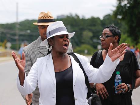 Ալֆարետայի Սբ Ջեյմսի միավորված մեթոդիստական եկեղեցում ընթացող հոգեհանգստի ժամանակ Ուիթնի Հյուսթոնի տալը` Լիոլա Բրաունը, և Բրաունների ընտանիքի այլ անդամները անսպասելի հեռացել են արարողությունից ու դիմել ԶԼՄ-ներին: Հյուսթոնի տալը լրագրողներին ասել է, թե բարկացած է, որ Հյուսթոնի քույրը` Փեթ Հյուսթոնը, խոսել է արարողության ժամանակ:
