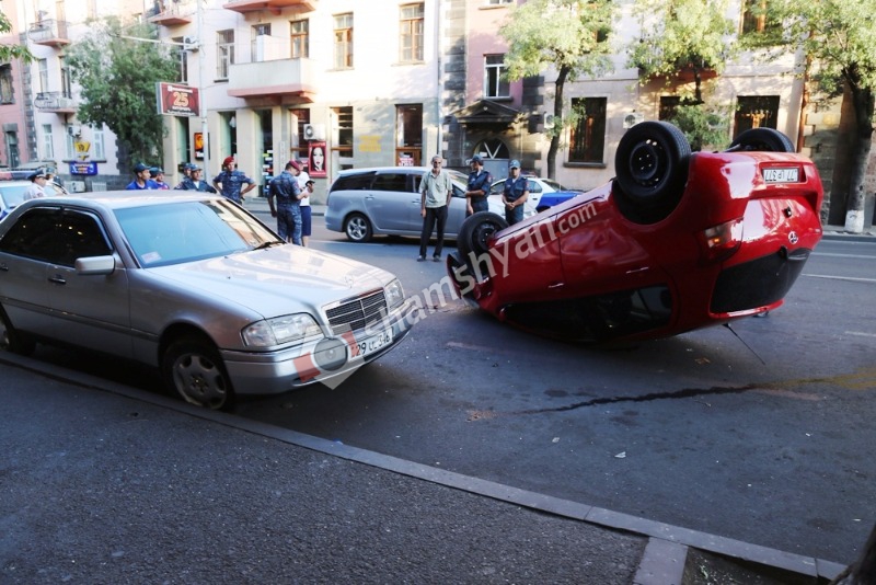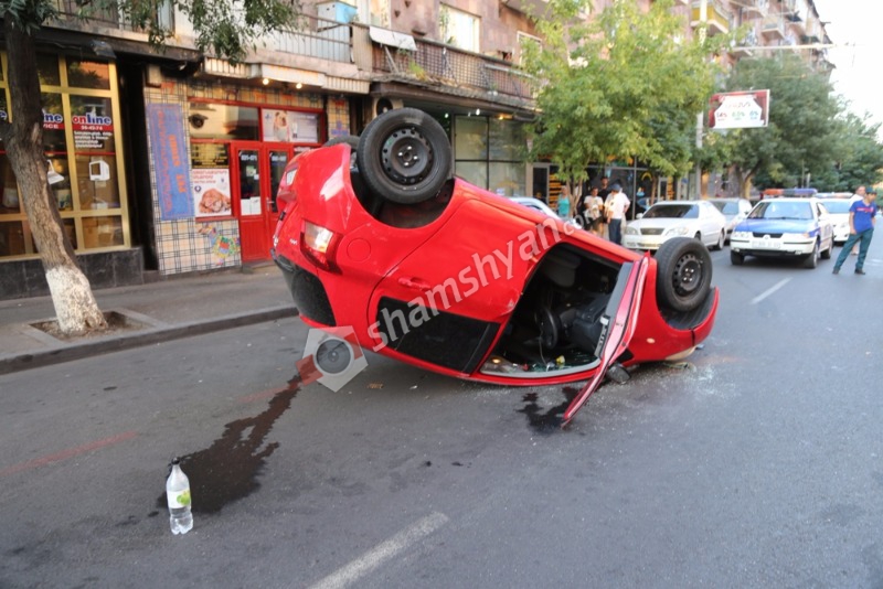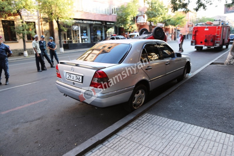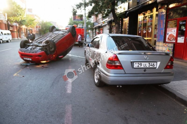 Երևանի թիվ 114 դպրոցի փոխտնօրենը Toyota Yaris-ով բախվել է կայանված Mercedes-ին և գլխիվայր շրջվել. Shamshyan.com
