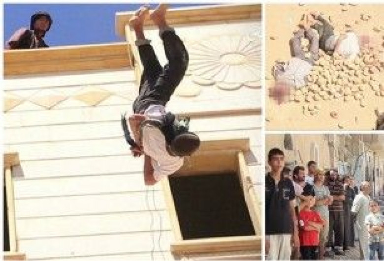 Ինչպես գրում է Daily Mail-ը` ծայրահեղական խմբավորումը տեսանյութ է տարածել, որում առաջին անգամ երևում է, թե ինչ է լինում մահացածների մարմինների հետ: Միջադեպը տեղի է ունեցել սիրիական Հոմս քաղաքում, որտեղ տղամարդկանց ցած են նետել շենքի տանիքից, որից հետո հավաքված ամբոխը, որում նաև երեխաներ կային, քարեր է նետել նրանց վրա: