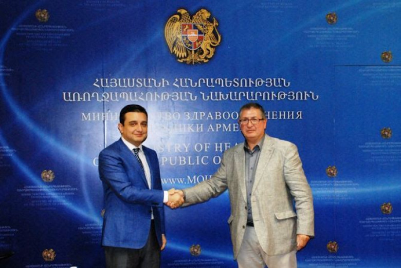 ՀասարակությունՀՀ առողջապահության նախարար Արմեն Մուրադյանն ընդունել է Ֆրանսիայի հայ բժիշկների միության նախագահ (Armenian Medical Union of France) Միշել Շահինյանին: Ինչպես «Արմենպրես»ին տեղեկացրին ՀՀ առողջապահության նախարարության հասարակաÕ �նության հետ կապերի բաժնից, միության անդամներն ամեն տարի այցելություններ են կատարում Հայաստանի մարզեր: Միշել Շահինյան խոսքով` եթե նախկինում աշխատանքը կենտրոնացած էր գլխավորապես մայրաքաղաքում, ապա այժմ իրենք ընդլայնել են գործունեության շրջանակը` ընդգրկելով նաև Հայաստանի մարզերը: