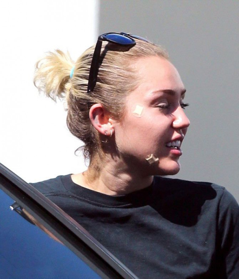 Майли Сайрус с пластырем на лице после посещения дерматолога 5