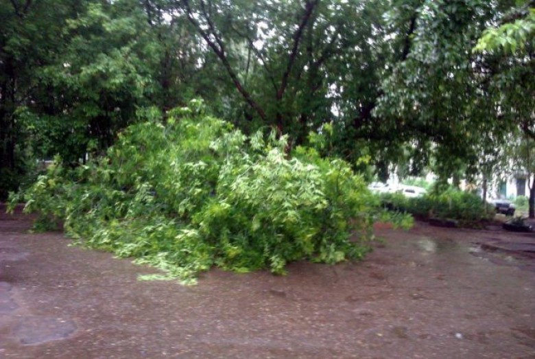 Պարոնյան փողոցում ծառի ճյուղն ընկել է բակում կայանված մեքենայի վրա