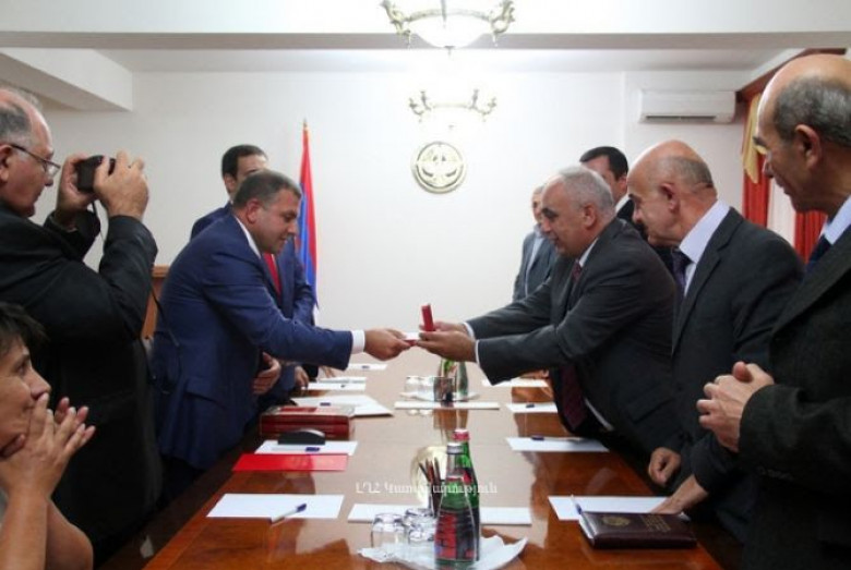 Փոխվարչապետ Արթուր Աղաբեկյանն Արամայիս Գրիգորյանին է հանձնել ԼՂՀ վարչապետի հուշամեդալը, որով նա պարգևատրվել է հայրենիքին մատուցած ծառայությունների համար: