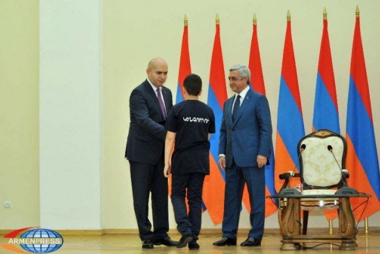 ՀասարակությունՆախագահ Սերժ Սարգսյանն օգոստոսի 27-ին հյուրընկալել է 2014-2015 ուսումնական տարում բարձր առաջադիմություն ցուցաբերած` հանրապետության հանրակրթական ուսումնական հաստատությունների մեդալակիր շրջանավարտներին, ինչպես նաև դպրոցականների միջազգային առարկայական օլիմպիադաներում 2015թ. հաջողությունների հասած՝ մայրաքաղաքի և մարզերի աշակերտներին, «Կենգուրու» միջազգային մաթեմատիկական մրց ույթում և հայոց լեզվի «Մեղու» մրցույթում հաղթող աշակերտներին: Արդեն ավանդական դարձած հանդիպման ժամանակ նրանք ստացել են իրենց պարգևները՝ մեդալները, հավաստագրերը և Հանրապետության Նախագահի կողմից նվերներ: