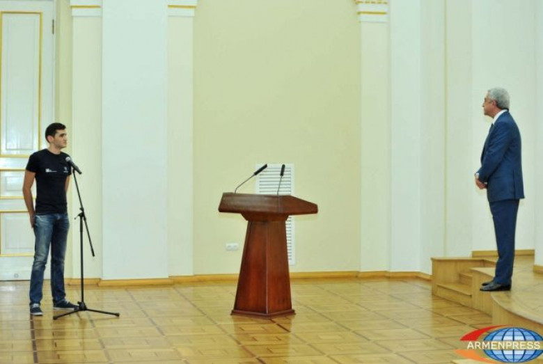 ՀասարակությունՄինչ ուսումնական տարվա մեկնարկը բարձր առաջադիմություն ունեցող եւ միջազգային օլիմպիադաներում բարձր տեղեր գրաված հայ դպրոցականները նախագահական նստավայրում են`հանդիպելու երկրի առաջնորդին եւ նրանից ստանալու պարգեւներ ու շնորհավորանքներ: Նրանց հետ հանդիպման ժամանակ նախագահը շեշտում է, որ տարատեսակ հանդիպումների ժամանակ մեծ գոհունակությամբ եւ հպարտությամբ է խոսում հայ դպրոցականների հաջողությունների եւ հակապես վերջերս միջազգային օլիմպիադաներում տարած հաղթանակների մասին: