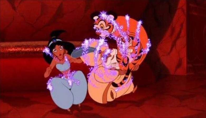 Եթե ուշադիր նայենք մուլտֆիլմը, հնարավոր է տեսնել, թե ինչպես է Ժասմինի՝ Ռաջա անունով վագրը Ջաֆարի կախարդանքից ազատվելու ժամանակ Միկի Մաուսի տեսք ստանում։